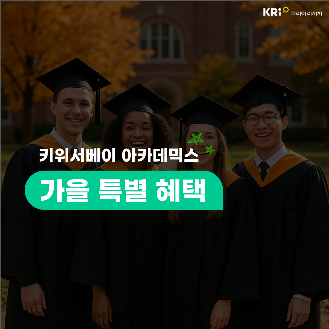 여러분!이번 학기 논문 조사 준비 중이신가요? 올 가을, 키위서베이 아카데믹스에서 준비한특별 이벤트를 꼭 확인하세요 ✨-기간: 10월 1일 ~ 11월 30일 논문 조사 준비 중인 분들이라면놓칠 수 없는 타이밍입니다! 지금 의뢰하면,UP TO 10% 할인합리적인 비용으로 더 알차게 논문 준비하세요~!✔️여름 이벤트의 인기, 가을까지 쭉 이어갑니다.✔️본 이벤트는 학술·논문조사에만 적용됩니다.같이 의뢰하면,1+1 할인 혜택 친구와 함께 합리적인 비용으로 논문 준비하세요~!✔️할인 비용은 별도로 문의주세요.✔️여름 이벤트의 인기, 가을까지 쭉 이어갑니다.✔️본 이벤트는 학술·논문조사에만 적용됩니다.논문 조사, 이제 혼자 고민하지 말고혜택 가득한 키위서베이 아카데믹스이벤트를 활용하세요!“올 가을도 키위서베이 아카데믹스와 함께쏟아지는 할인 혜택을 누리세요!”학술·논문 조사는 바로 지금 시작!02-3415-5100info@kric.comkr.co.kr
