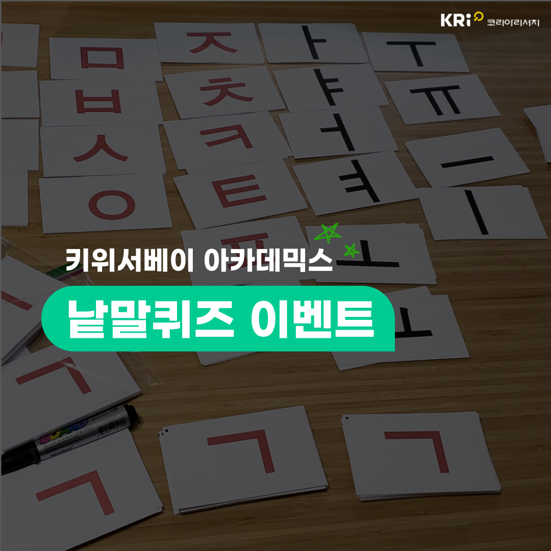 가로세로 낱말퀴즈 이벤트 재미있게 퀴즈도 풀고, 선물도 받아가세요!코리아리서치에서 준비한 특별한 "가로세로 낱말퀴즈 이벤트"가 진행됩니다.퀴즈를 풀고 정답을 제출하면 추첨을 통해 CU 모바일 상품권(4,000원권)을 받을 수 있는 기회가 주어집니다.여러분들의 많은 참여를기다리겠습니다! ▶참여 기간: 9월 19일(금) ~ 9월 28일(일)▶경품: CU 4,000원권 (추첨 10명)▶당첨자 발표: 10월 2일(목), KRi 공식 블로그 발표◈ 참여 방법 ◈ STEP 1‘코리아리서치’ 블로그/인스타그램 중 택1하여 이웃추가/팔로우 해주세요!*두 채널 모두 참여 시 당첨 확률 UP!!!STEP 2가로세로 낱말퀴즈 1번, 2번 정답을 맞히기 위해이미지 힌트**를 꼭 확인해주세요.코리아리서치 공식 채널에 포스팅을 살펴봐 주세요.*정답은 코리아리서치 공식 채널에서 금방 찾으실 수 있어요!!! STEP 3구글폼으로 이벤트 참여 인증 제출하면 끝~!*정답은 아래 구글폼으로 제출하셔야 인정됩니다! [구글폼 인증하기] 클릭해주세요! *** 힌트 *** 1번) 키ㅇㅅㅂㅇ아ㅋㄷㅁㅅ코리아리서치에서 운영하는 학술/논문 연구조사전담 서비스로 합리적인 비용으로빠른 시간 조사가 가능합니다.2번) ㅋㄹ아ㄹㅅㅊ1번에서 정답이 이미 나왔죠?사람과 함께 성장하는 리서치 전문기업으로올해로 창립 37주년을 맞이할 정도로업계에서 역사를 자랑하는 회사입니다.⚠️유의사항※ 이벤트 당첨자는 '무작위 랜덤 추첨'을 통해 선정됩니다.※ 본 이벤트는 구글폼을 통해서만 참여할 수 있으며, 동일인 중복 참여는 1회로 인정됩니다.※ 상품 발송 전, 공식 채널 이웃추가/팔로우를 취소할 경우 당첨이 취소될 수 있으니 발표날까지 유지해주셔야 합니다.※ 이벤트 참여 시, 기재한 정보는 경품 발송 목적으로만 활용되며, 본래의 목적 달성 후 폐기합니다.※ 연락처 기입 오류로 인한 경품 오발송은 책임지지 않습니다.※ 이벤트 일정 및 내용은 주최 측 사정에 따라 변경될 수 있습니다. ▶ 학술·논문 조사 전문 서비스는역시 키위서베이 아카데믹스! ☎ 지금 바로 상담받고, 혜택 누려보세요! ▶️ 코리아리서치 문의 ▶️ 키위서베이 문의